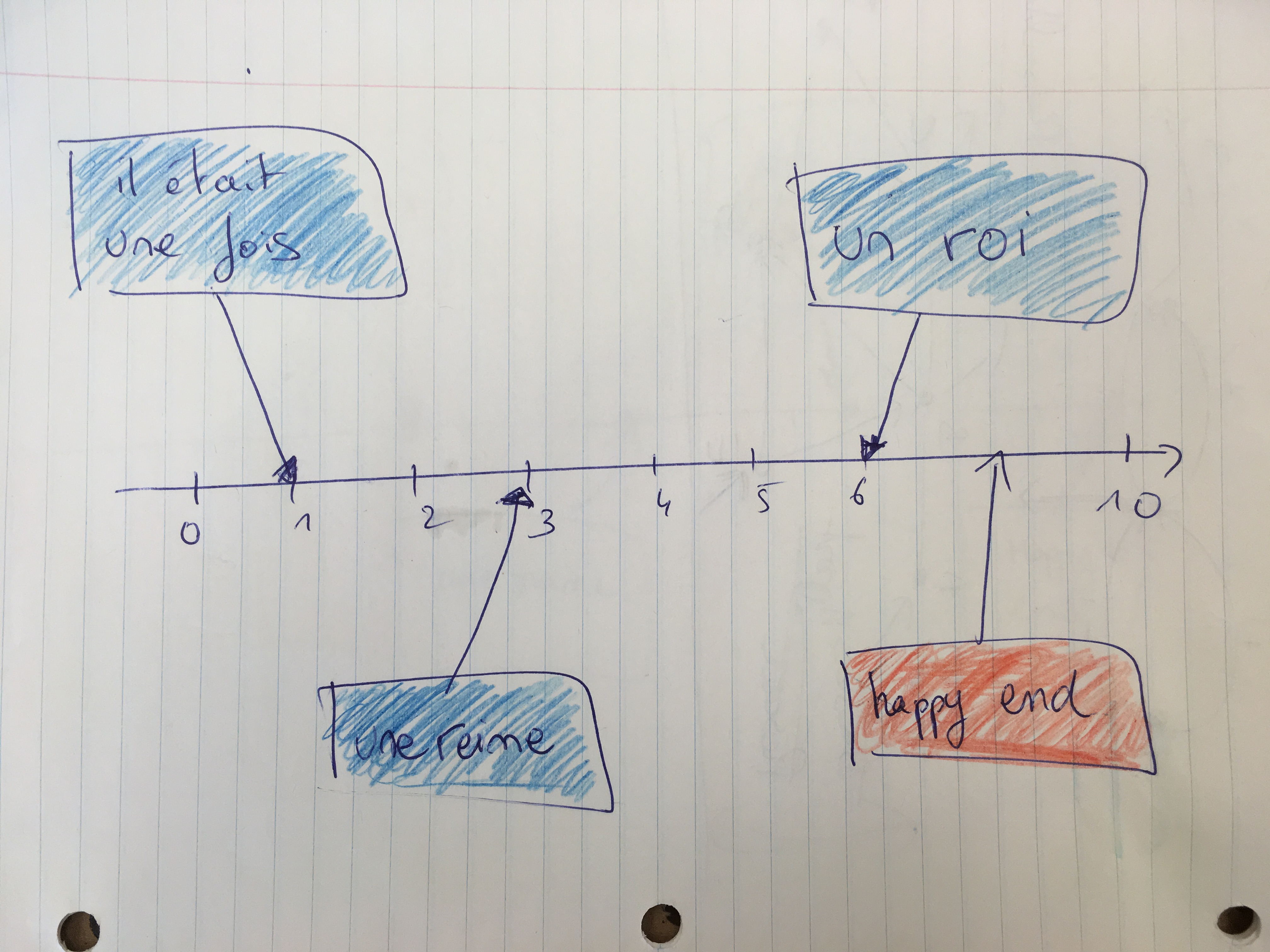 ] (fois) at (0.5, 2.5) {Il était une fois};