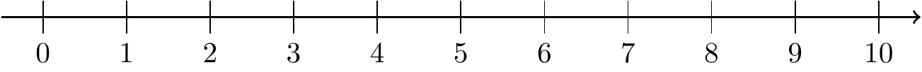 \draw[->, thick] (-0.5, 0) -- (10.5, 0);